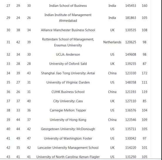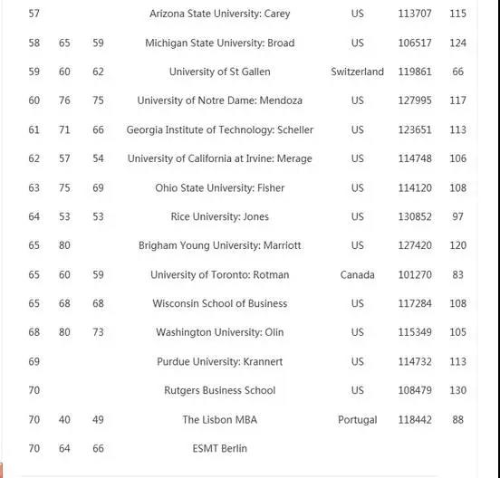 我們可以看到排名前十的商學院,畢業生薪水漲幅都在90%以上,事實上排名前100的商學院,最低的薪水漲幅也在60%以上,而最高的超過150%,有超過50家的畢業生薪水漲幅都超過100%。