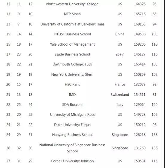 先來看幾張圖,這是金融時報(Financial Times)2017年全球商學院MBA排名!公布的指標包括畢業起薪,薪水漲幅,貨幣價值,職業發展,校友推薦等。