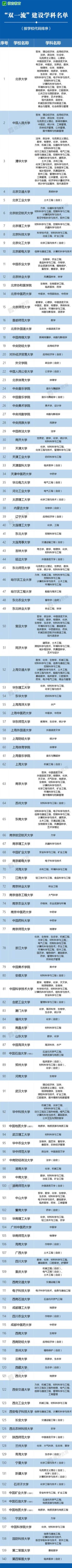 日前,教育部、財政部、國家發(fā)展改革委印發(fā)《關(guān)于公布世界一流大學和一流學科建設(shè)高校及建設(shè)學科名單的通知》,公布世界一流大學和一流學科(簡稱“雙一流”)建設(shè)高校及建設(shè)學科名單。