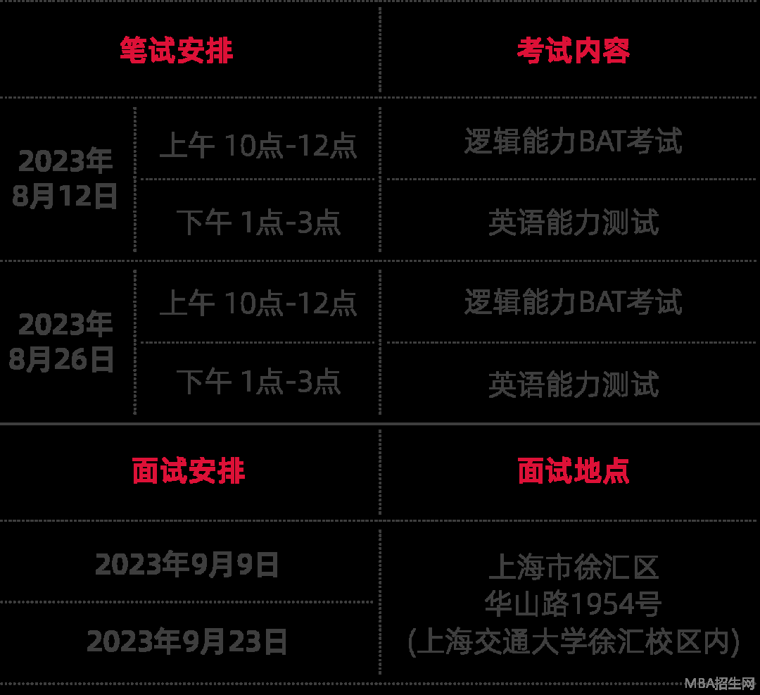 上海交大-KEDGE國際在職MBA項目組將于2023年8、9月份舉行本項目2023年度報名截止之前的倒數第二批筆、面試工作。請有報名計劃的同學,抓緊報名,合理規劃本年度的學習計劃。