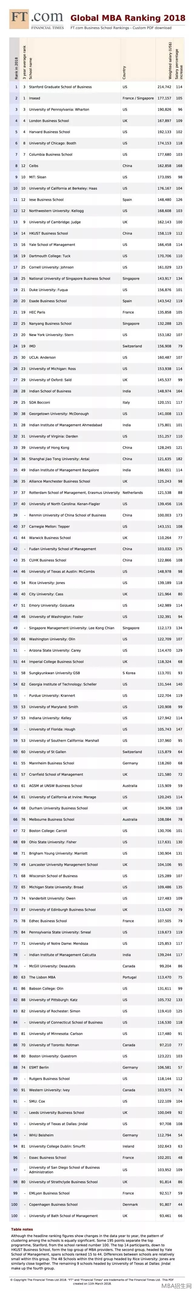 不管是Fulltime的MBA項目,又或者是短期課程,同學們參與到MBA項目中的選擇越來越多,但在這么多國家和地區當中選擇自己合適的院校和項目,并非簡單的事情。今天教育君就為大家帶來《金融時報》的MBA項目前100的榜單,為大家挑選適合自己的MBA項目提供一點小小的建議。