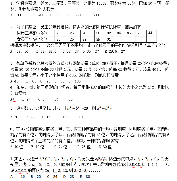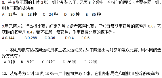 三、邏輯推理:第26~55小題,每小題2分,共60分。下列每題給出的A、B、C、D、E五個選項中,只有一項是符合試題要求的。請在答題卡上將所選項的字母涂黑。